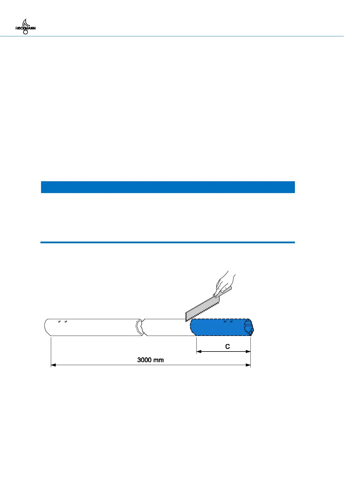 furling section and a corresponding spacer hose must be shortened by the offcut measurement 'C'.