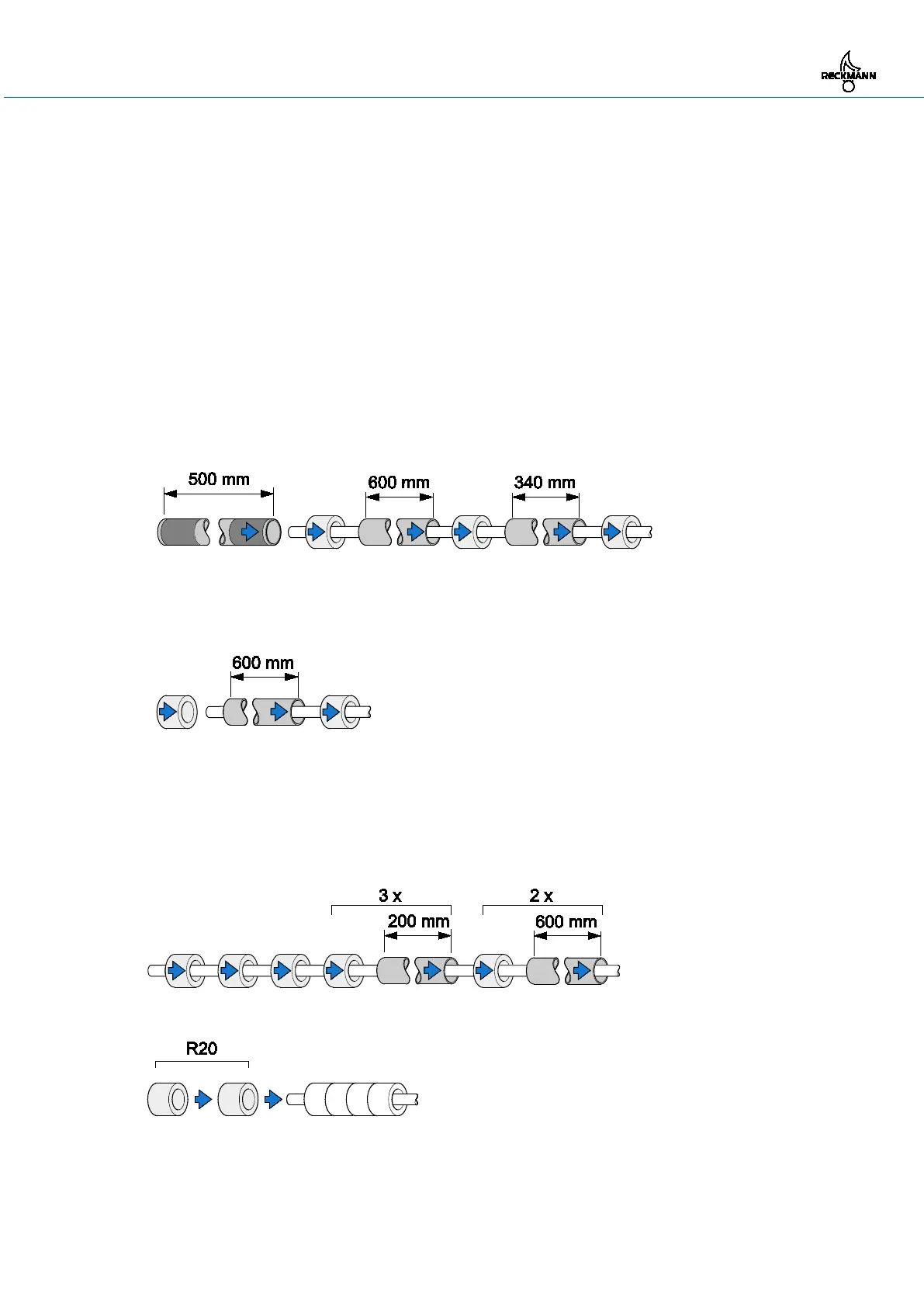 3. Slide on a 200-mm-long spacer hose and a standard bushing and repeat two more times.