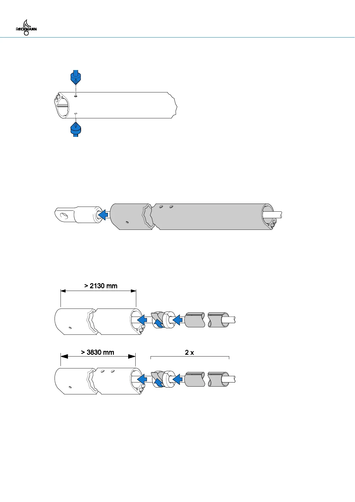 2. If the top furling section is 2130 mm long or longer but shorter than 3830 mm, then mount a split