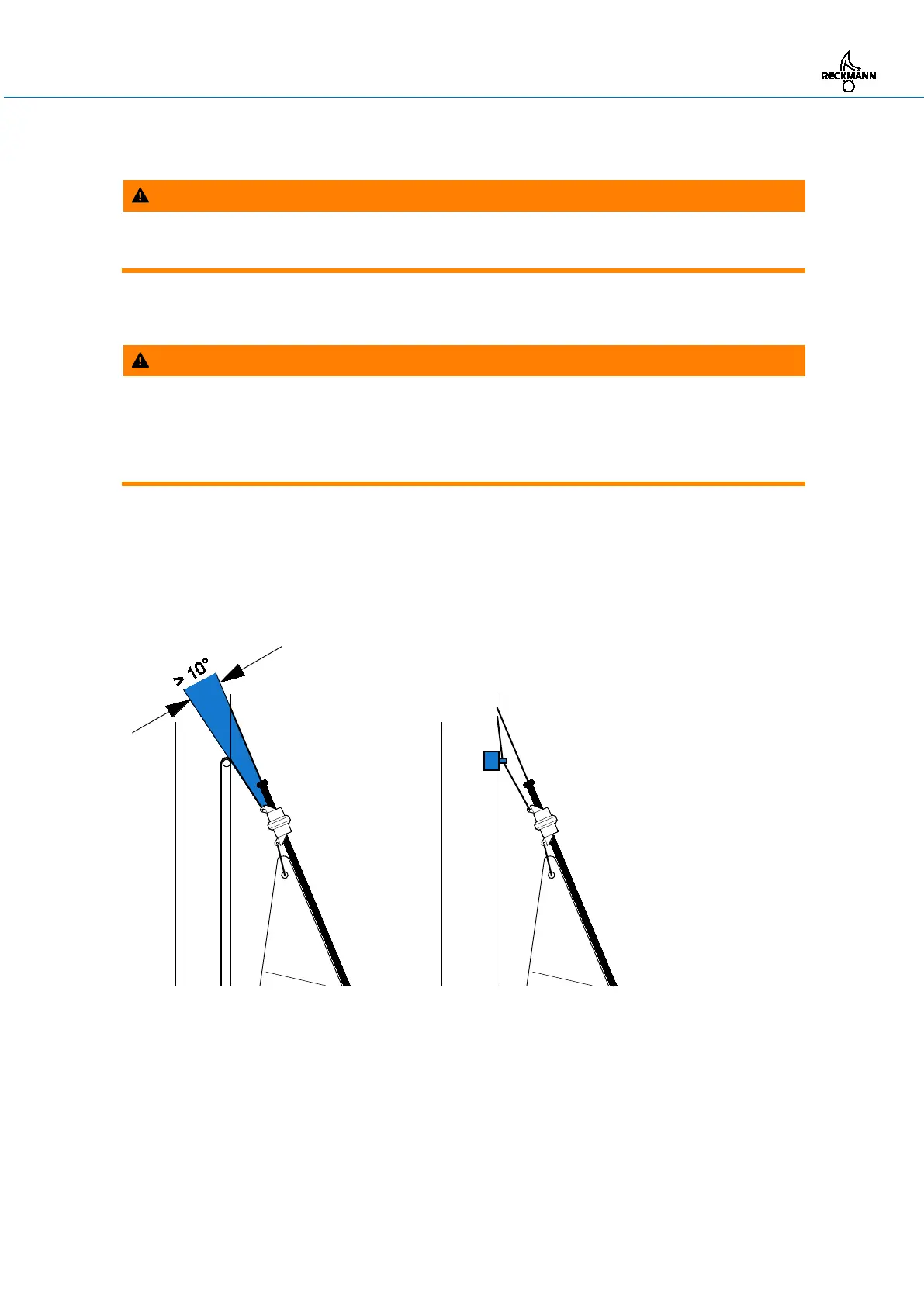When the sail is hoisted the halyard must run at an angle of at least 10° from the halyard swivel to