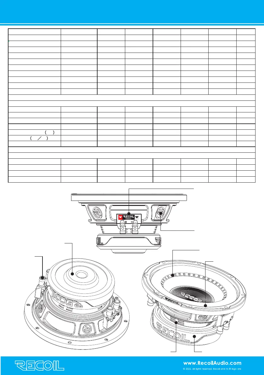 Recoil RW8D2 - Detailed Technical Specifications; RW Series Subwoofer Specifications
