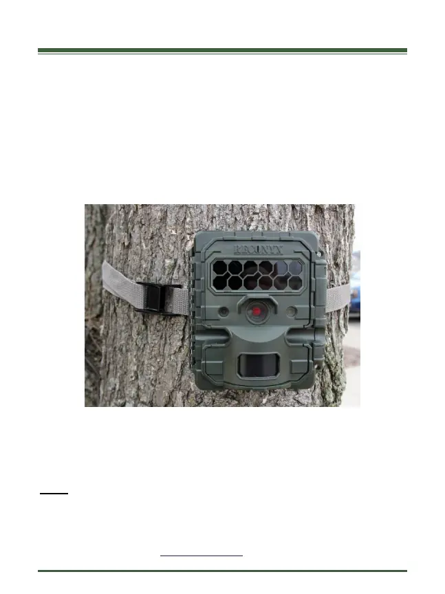 The camera can also be mounted to a tree by using the adjustable webbing strap
