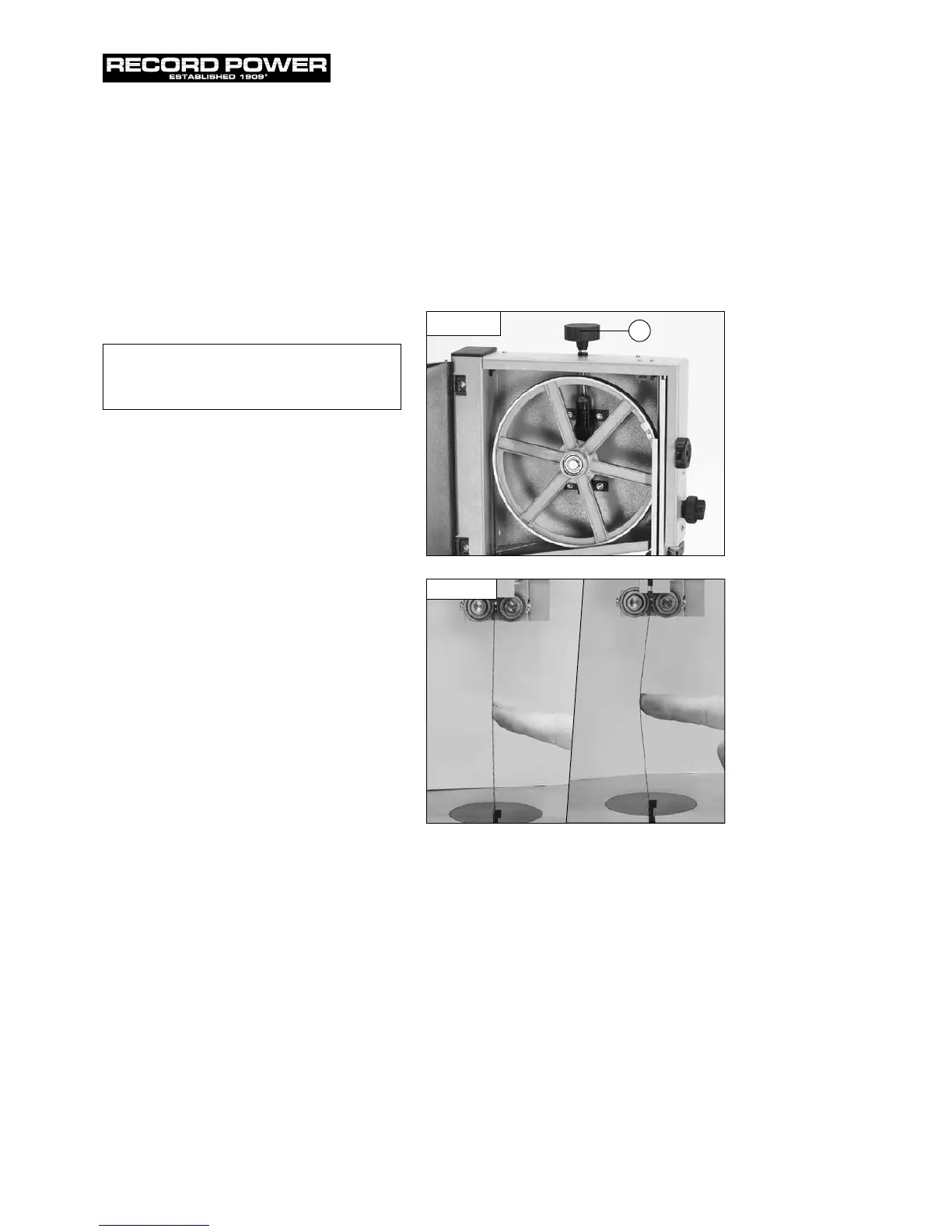The blade tensioning knob (Fig. 9.1, A) should be used to