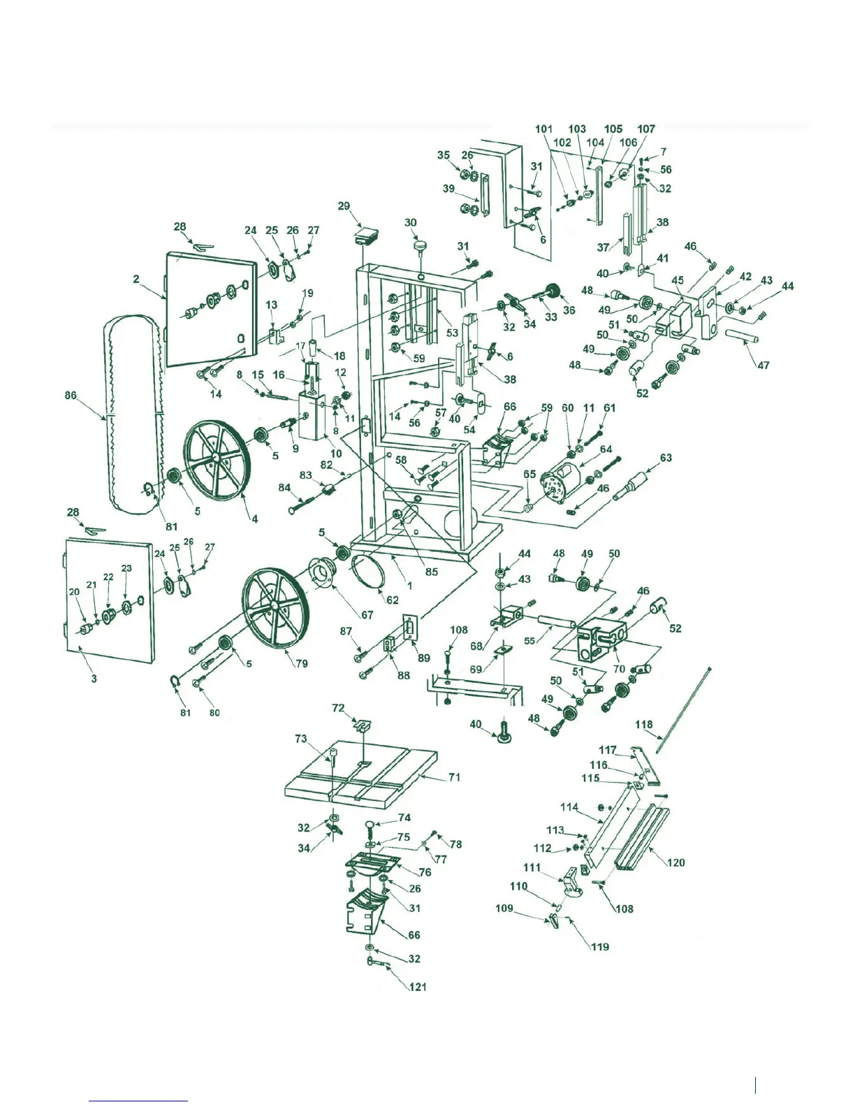 Record Power BS250 - Main Bandsaw Parts Diagram