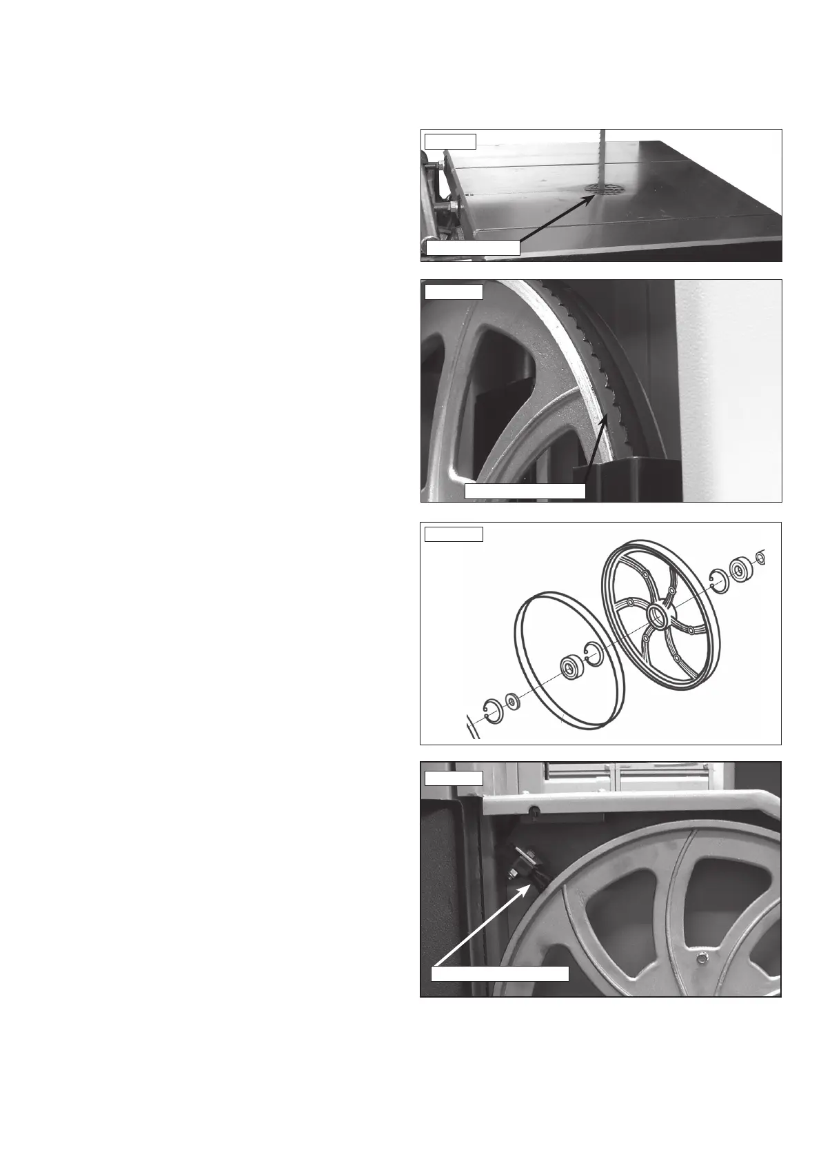 with the bandsaw blade removed. To replace the table insert simply push