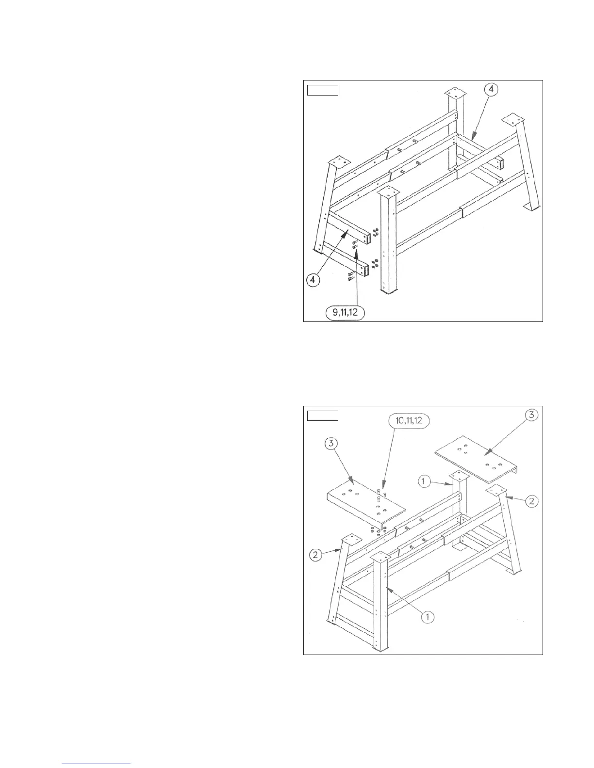 8. Attach the two top plates (3) onto the legs (1 and 2) using the fasteners