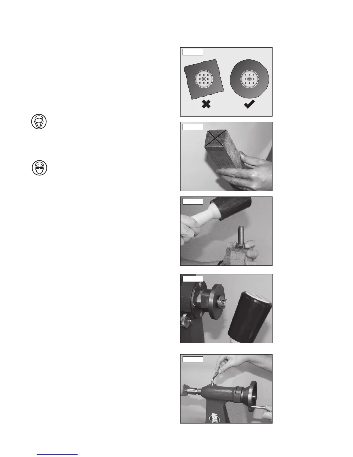Before mounting the workpiece to a faceplate or chuck (not supplied), it is