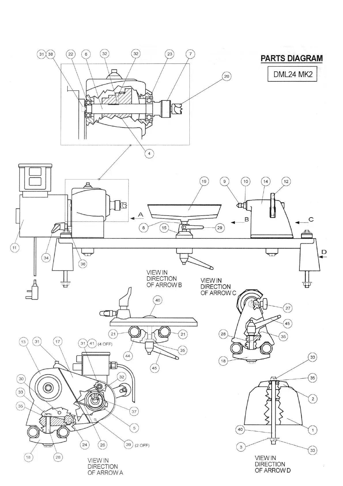 Record Power DML24X-MK2 - Spare Part Identification; Parts Diagram and Labels
