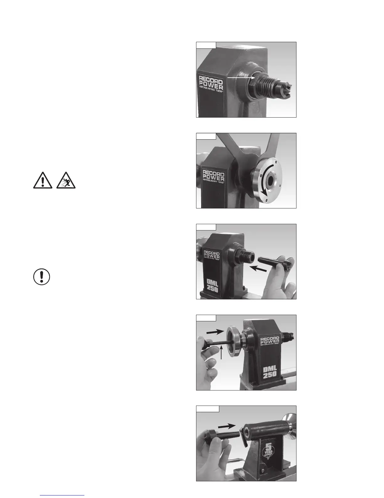 Before fitting the drive centre the faceplate must be removed from the lathe.
