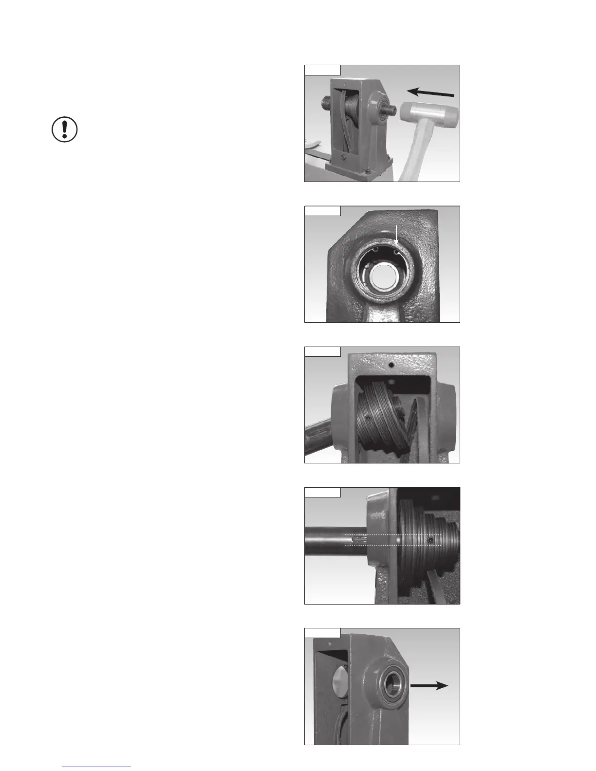 Once the spindle pulley is loose, carefully knock the spindle out of the