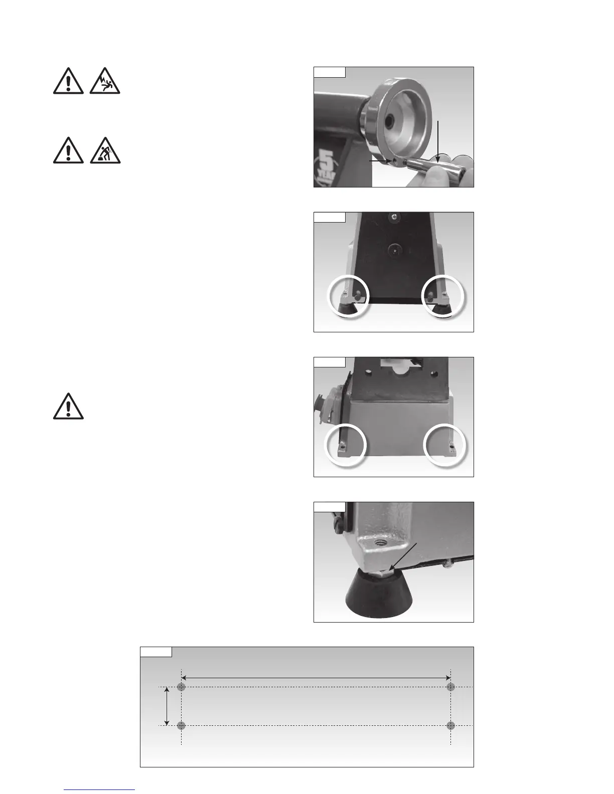 tailstock end, Fig 8.3. Screw each rubber foot to each corner of the lathe