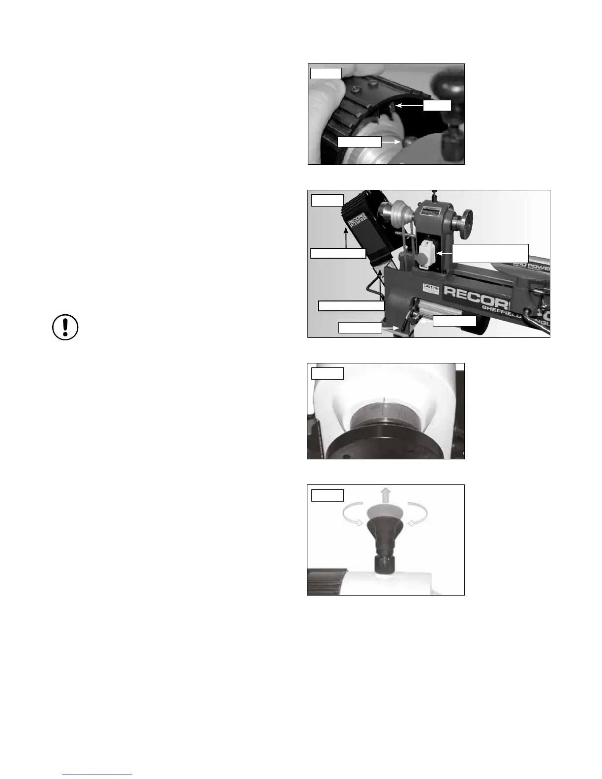 To stop the machine, press the red button marked ‘O’ on the headstock,