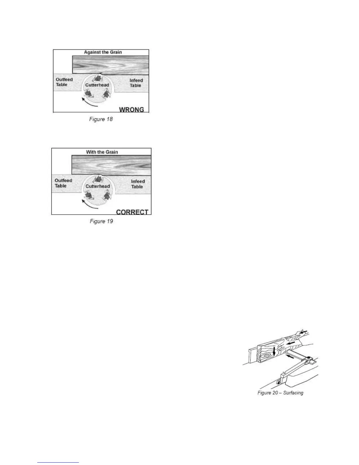 Avoid feeding work into the jointer against the grain (Figure 18).