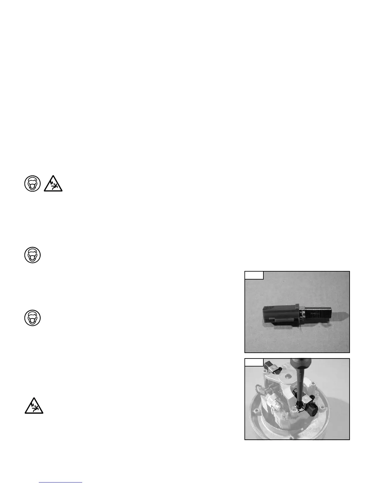 into place to secure and re-connect the wires. When replacing motor brushes, take care not to allow dust, oil,