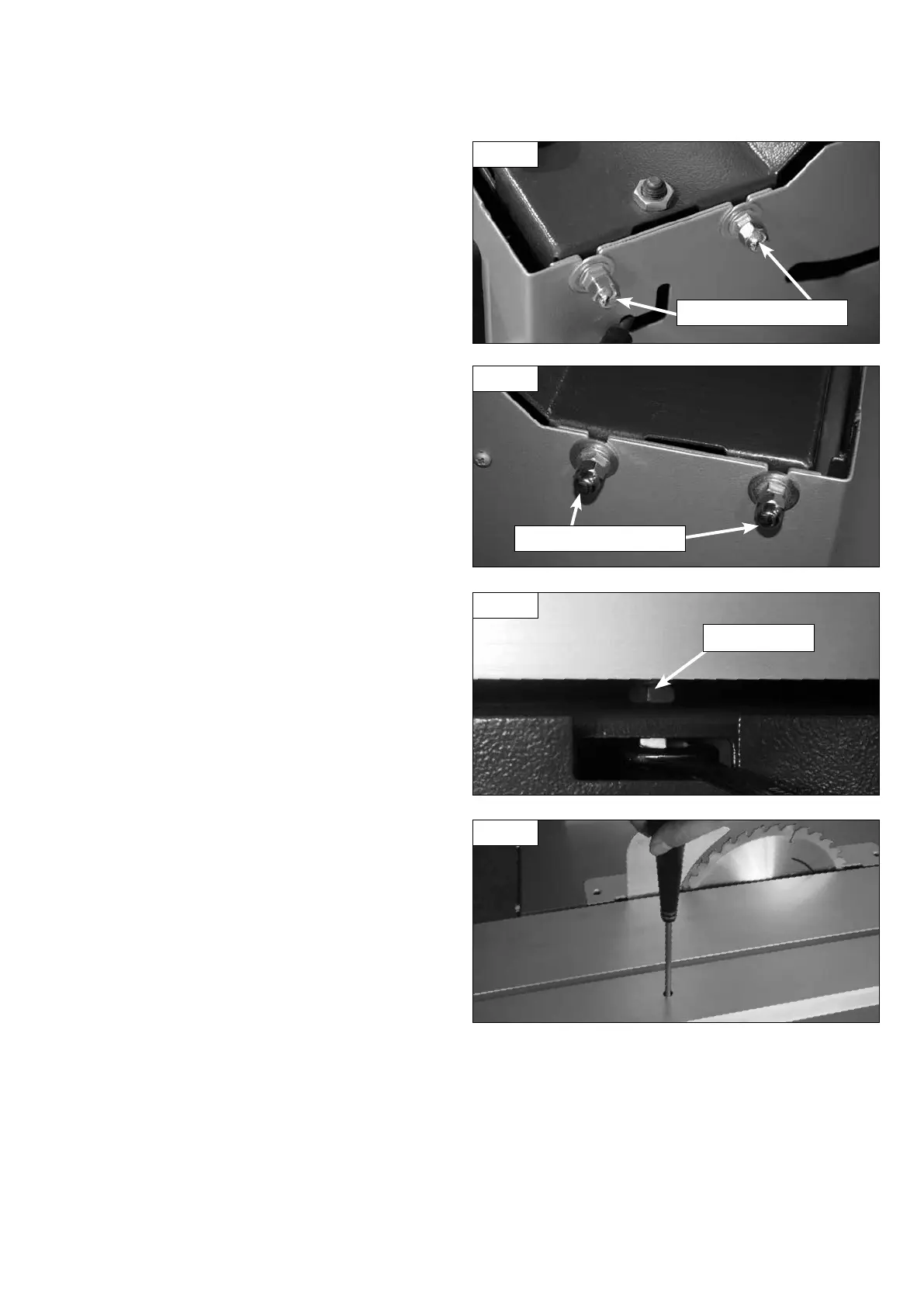 • Adjust the table as necessary and re-tighten the domed nuts.