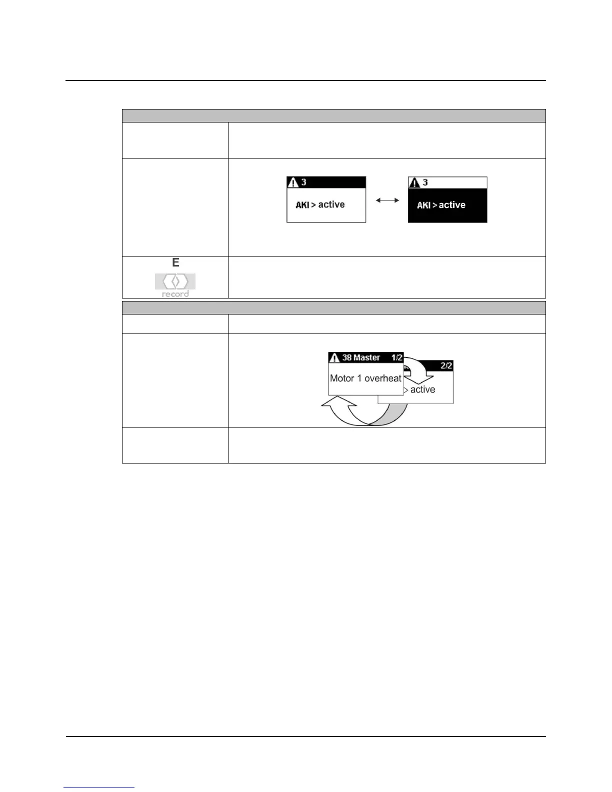 Temporary return to the Standard screen for 4 s after browsing the fault