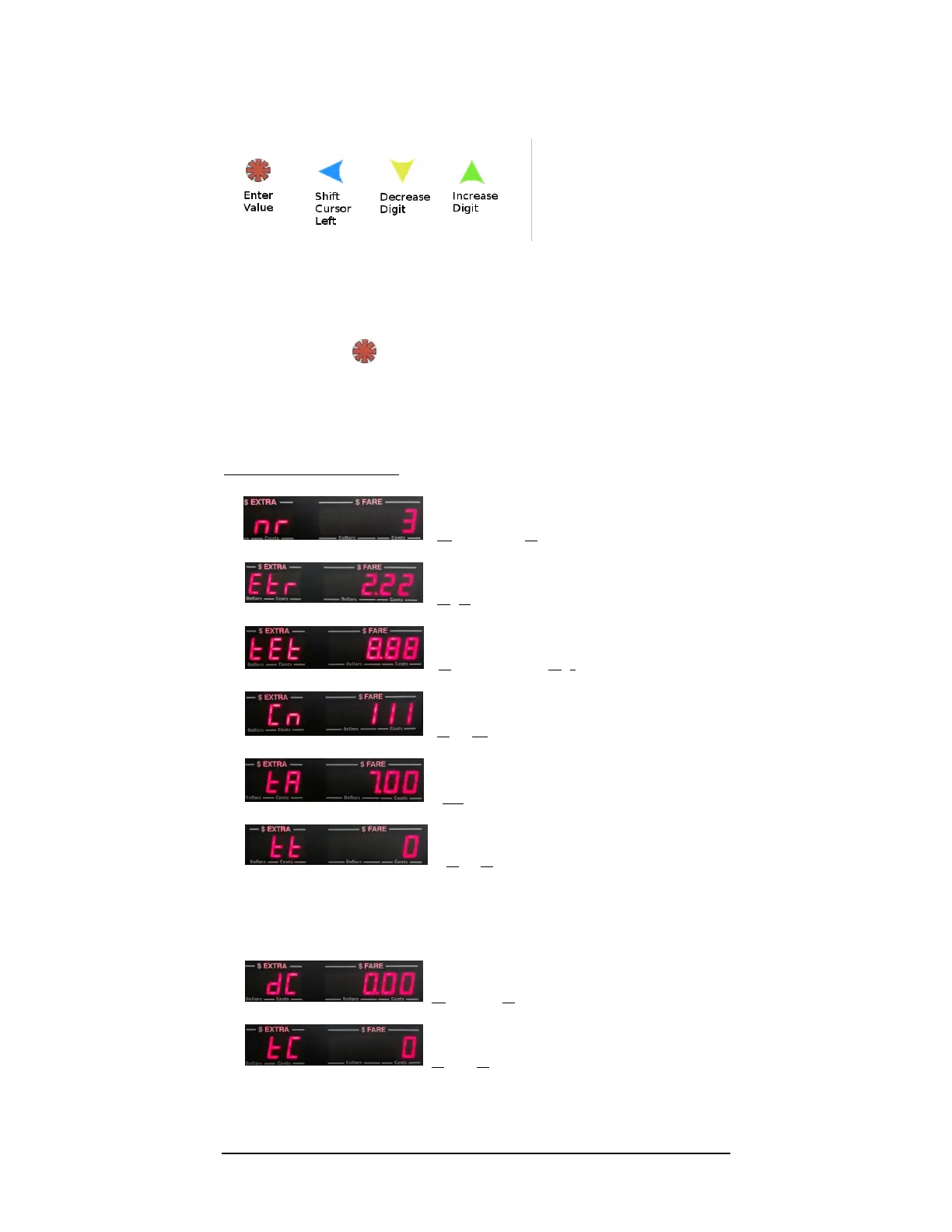 The right-hand ($FARE) display holds the actual value being adjusted.