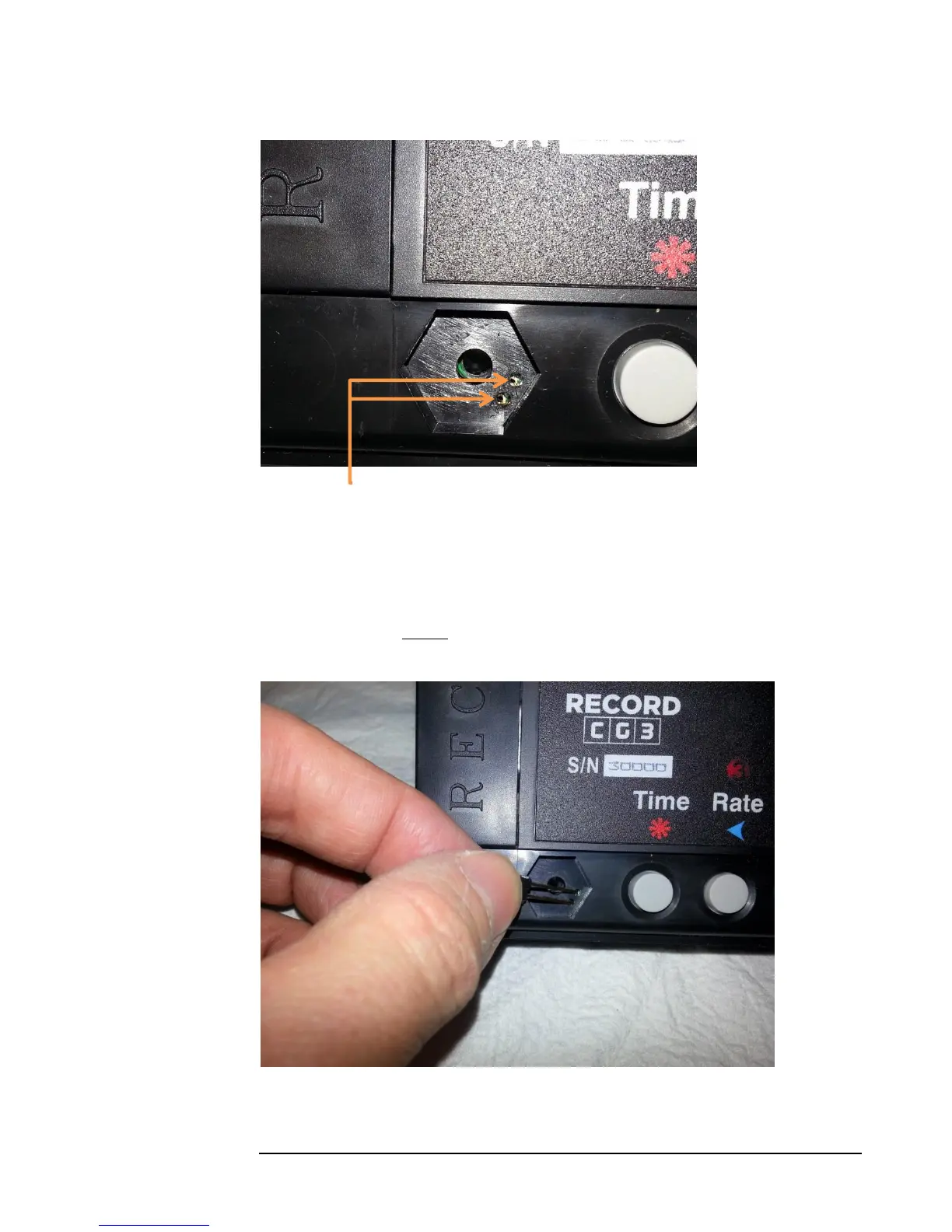 Figure 5: Activating the Config Switch, using the rate-set pin. Contact must be made with the two copper-plated holes on the circuit-