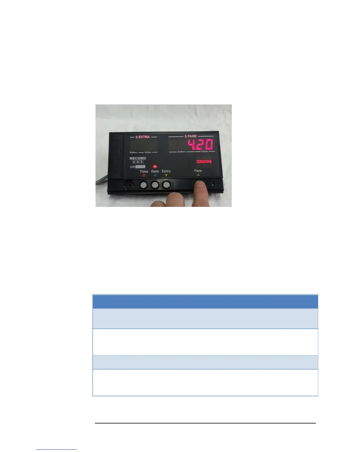 Figure 8: Entering Hired Mode by pressing the Fare Button.