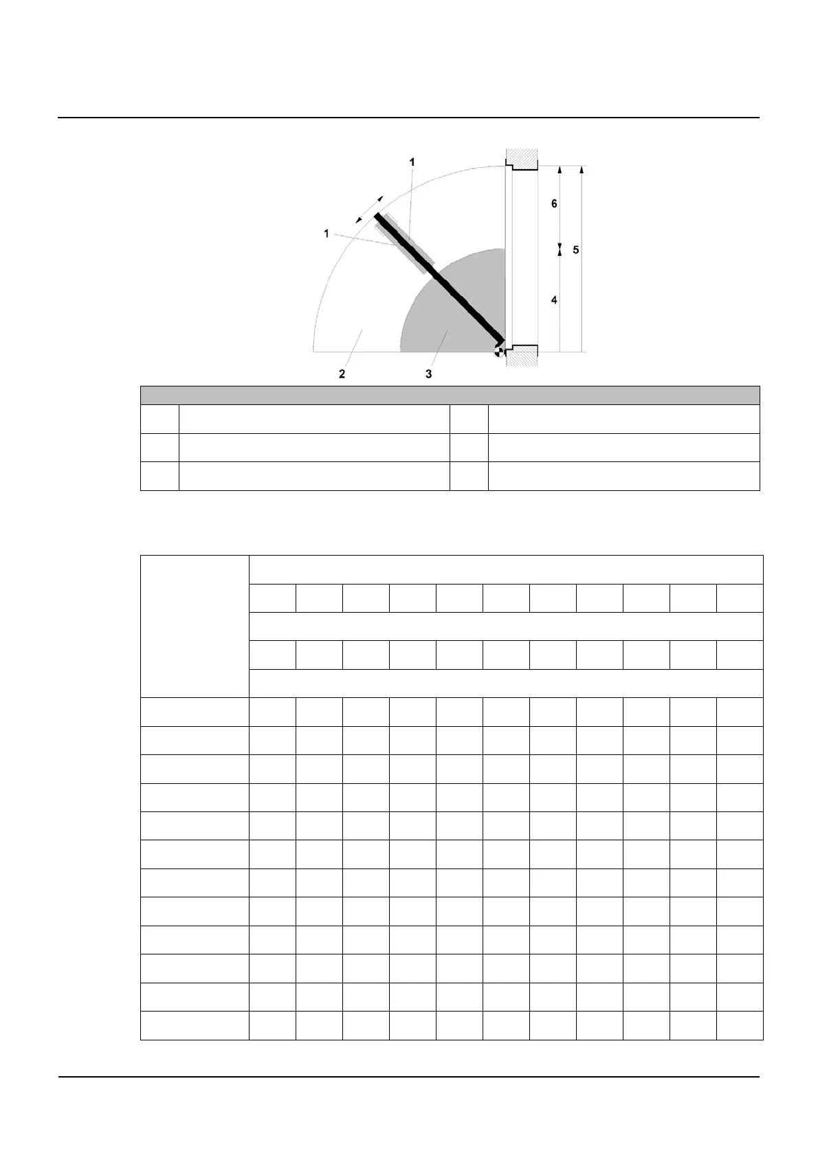 Minimum width of doorset leaf to be protected vs. radius of doorset and doorset