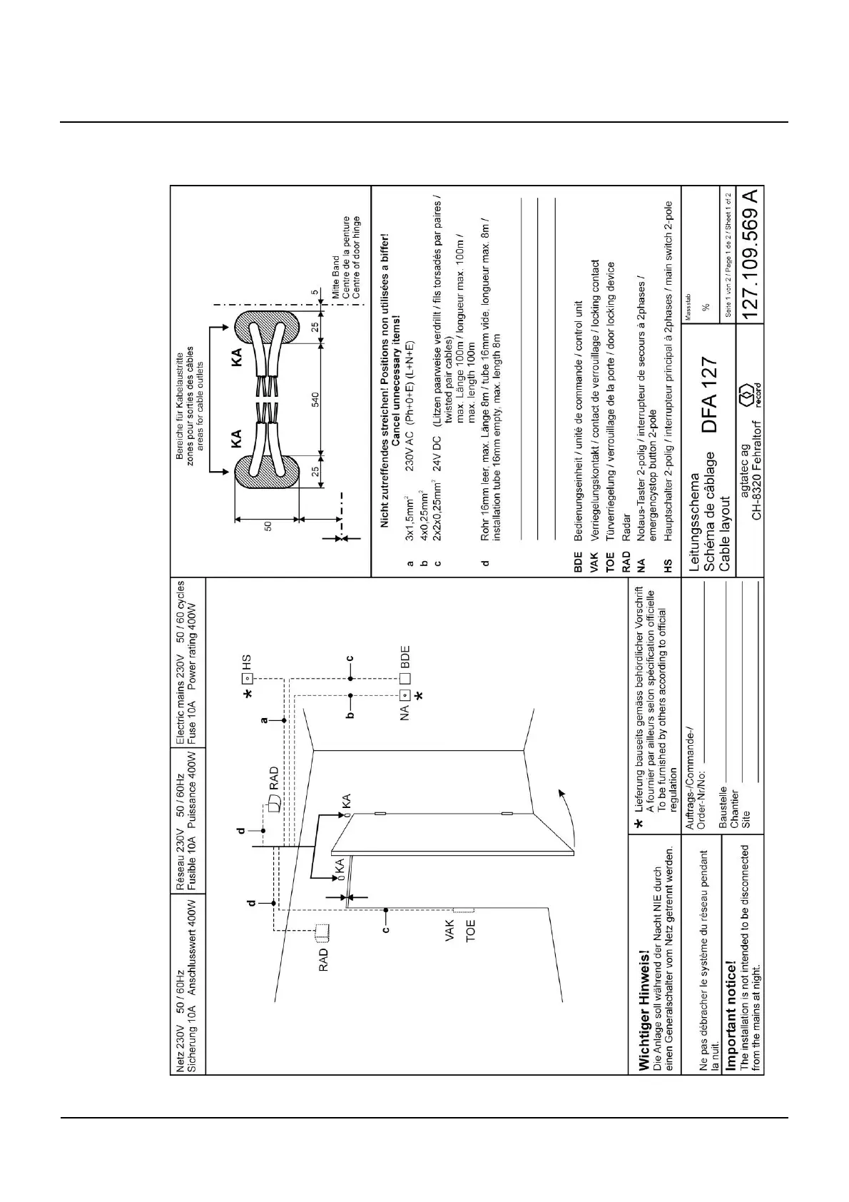 Record DFA127 - Drawings; Cable layout