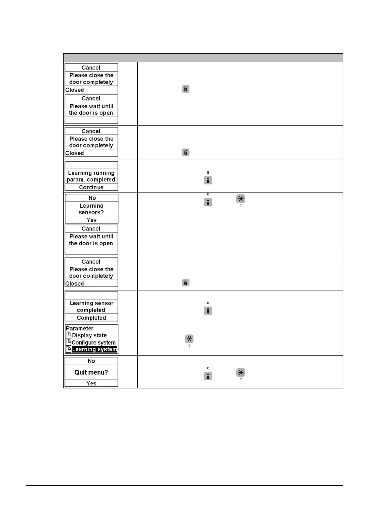 Record EPC 903 - Parameter and Sensor Learning; Door Operation and Menu Exit