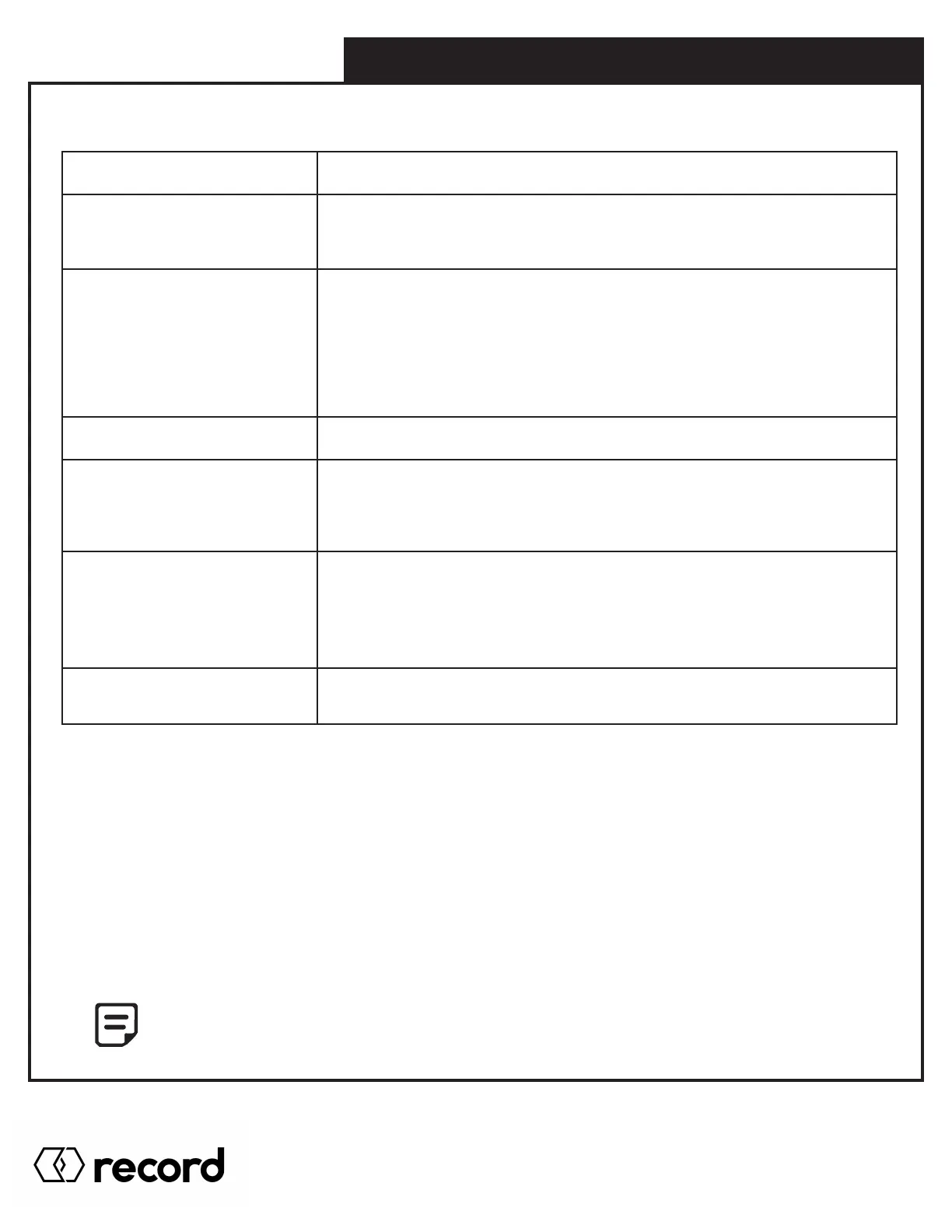 If the problem persists, contact your authorized Record representative for service! Toll