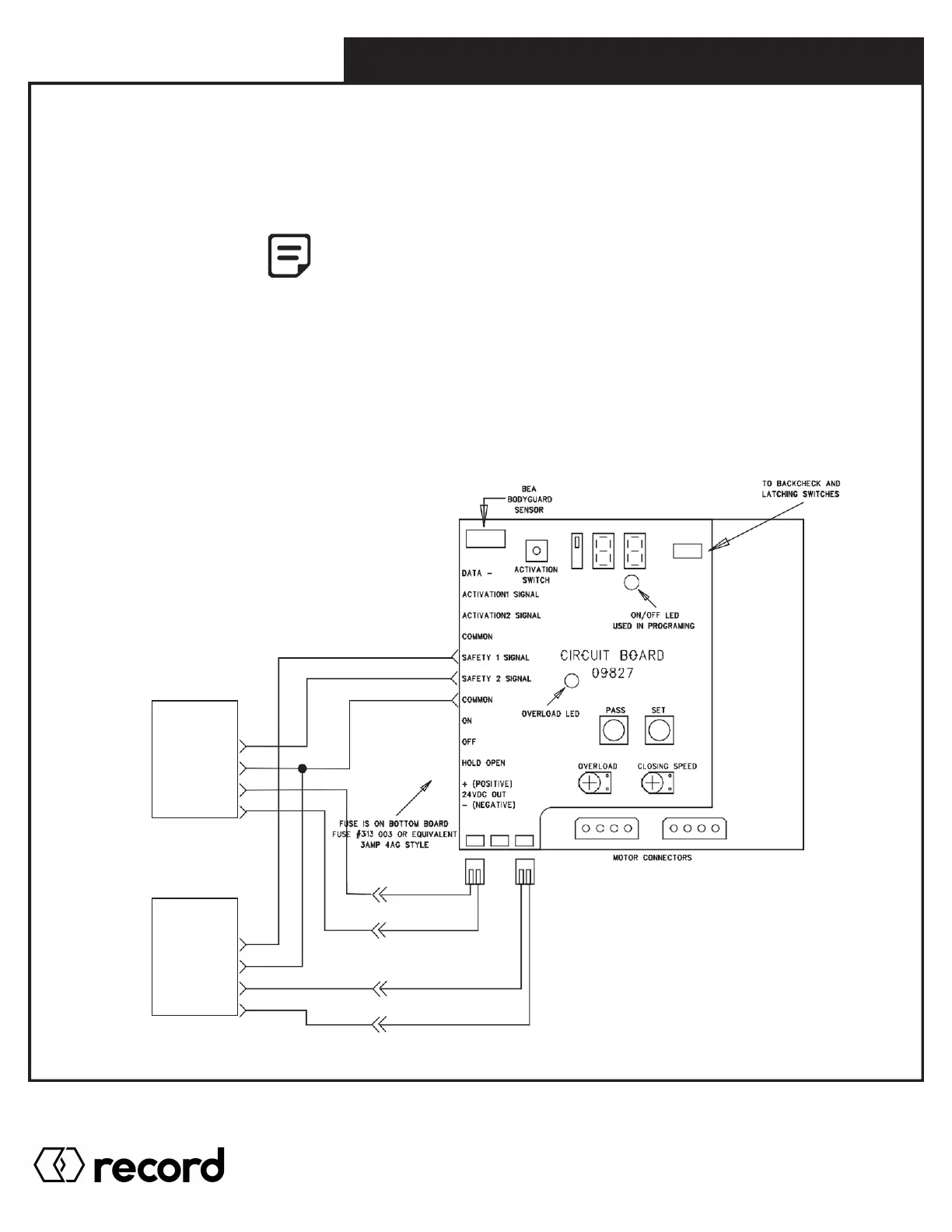 SM2A connectors separately to see that the door does not open when triggered. (Overload LED will flash 1/3sec).