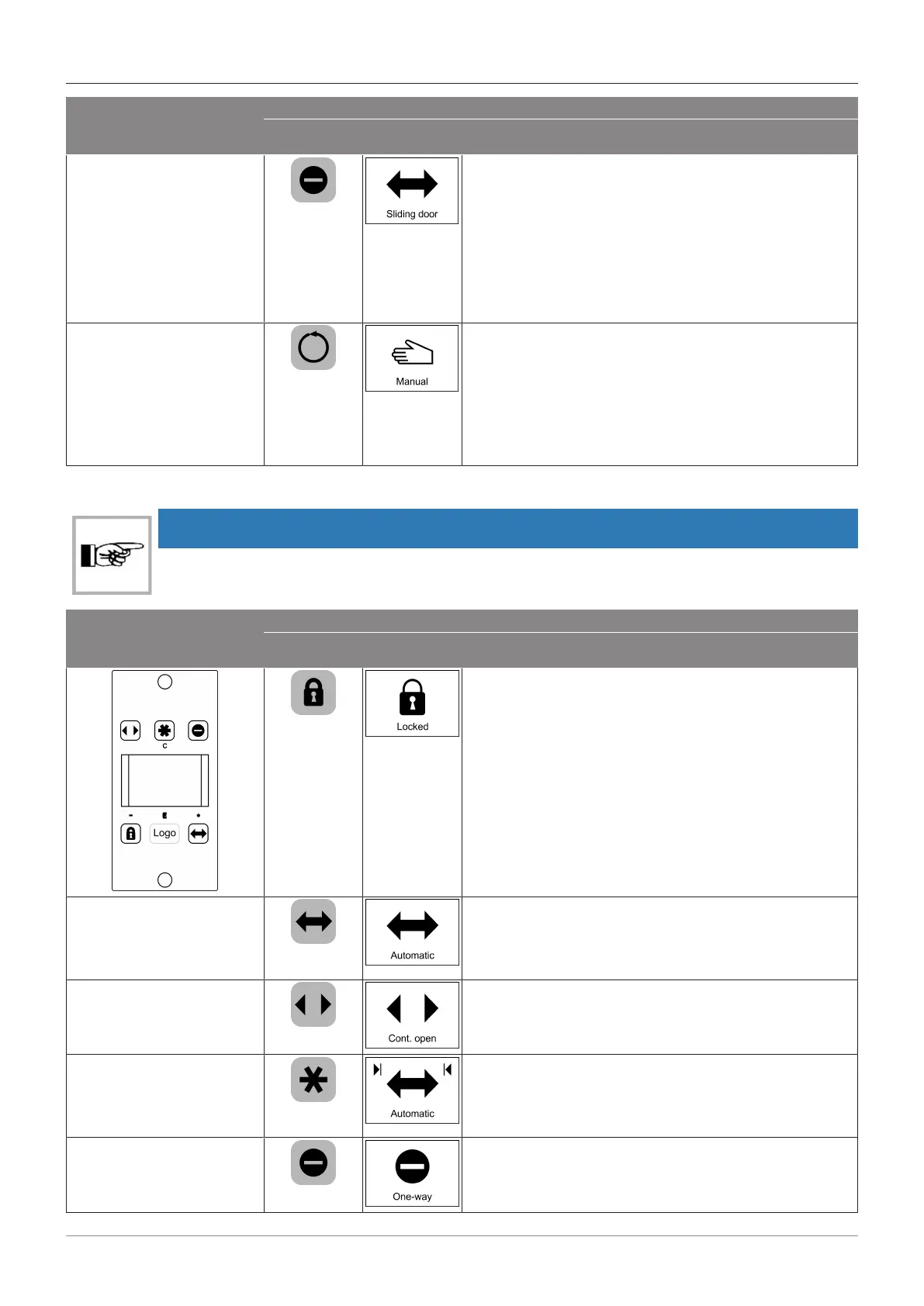 The sliding door operation will only function if "Sliding door" operating mode is selected on