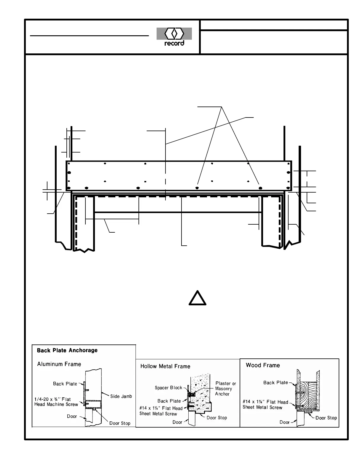 thickness or Wood frames, drill 3/16” pilot hole for #14 x
