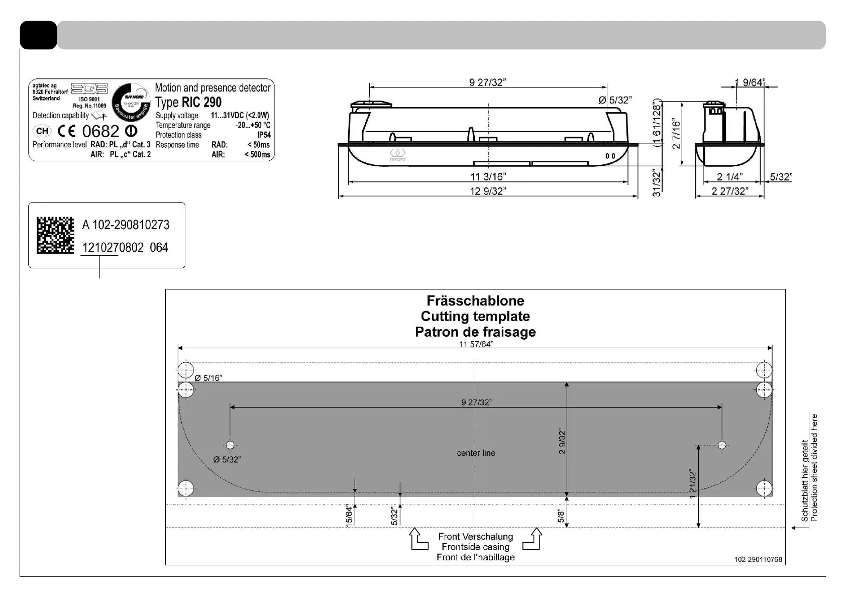 Record RIC 290 - RIC 290 G Specifications; RIC 290 G Dimensions