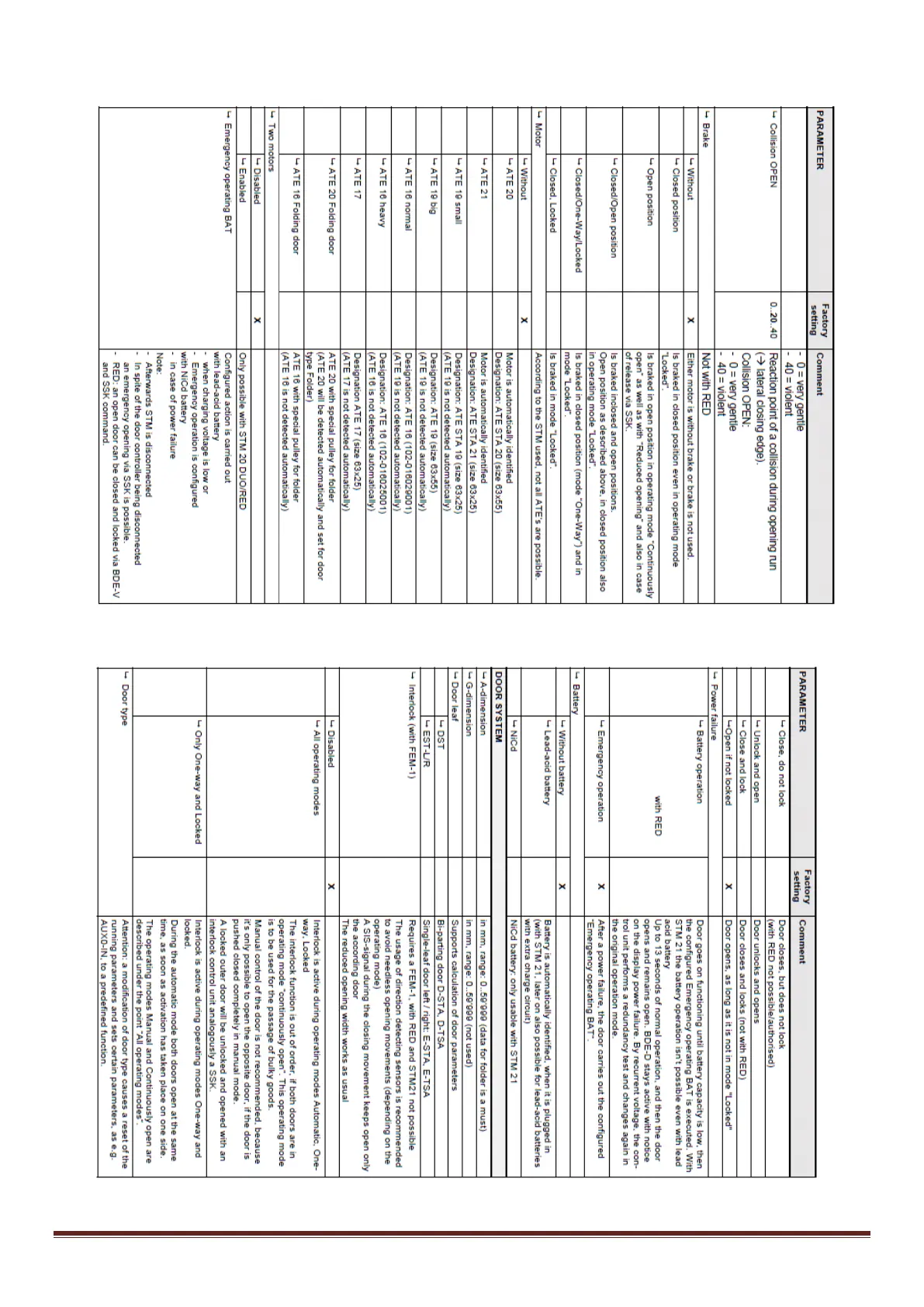 Record STA20 - Safety and System Parameters; Collision and Brake Settings; Motor and Door System Identification; Battery Operation and Power Failure