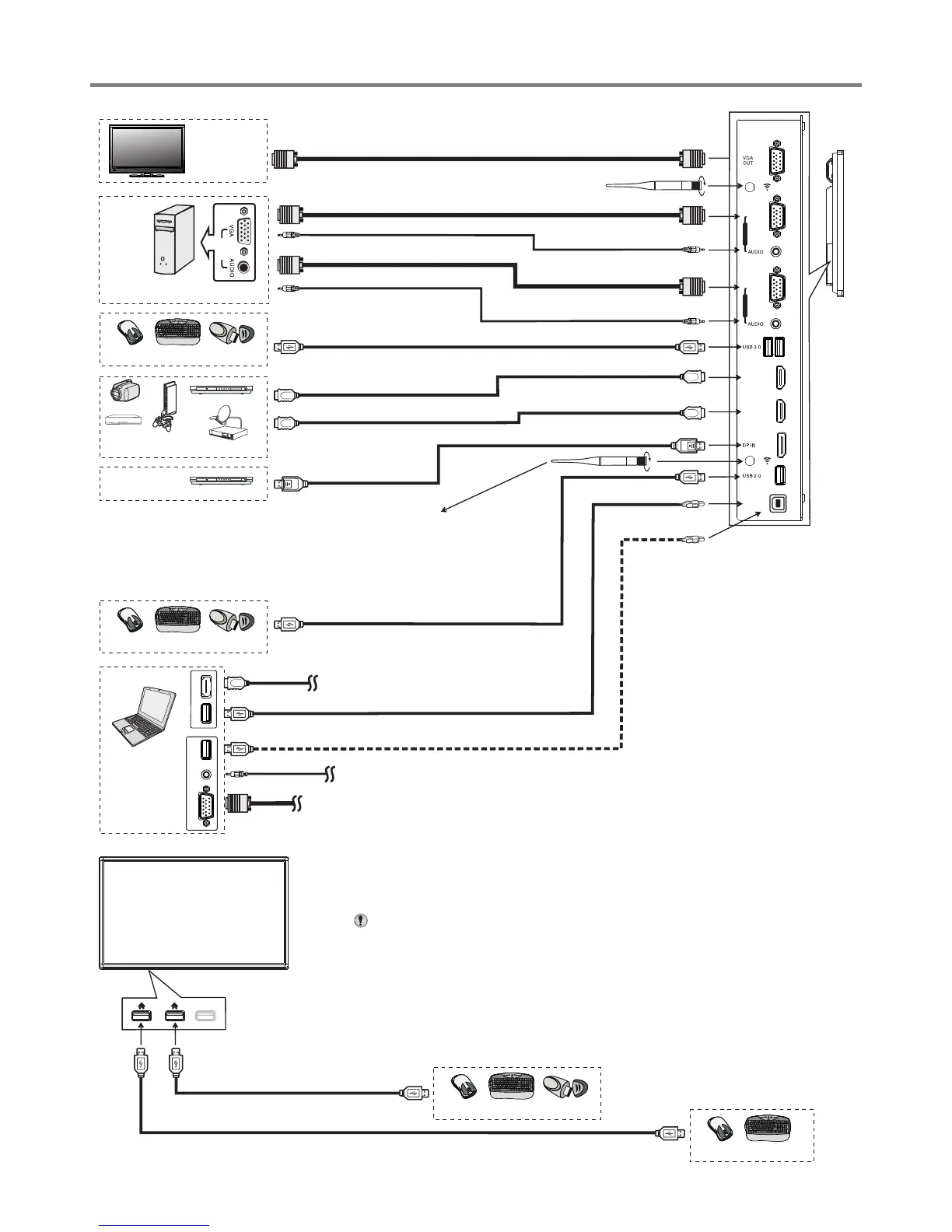 Notes: 1.The IFP is multiple USB port designed(3.0, 2.0), when connect with