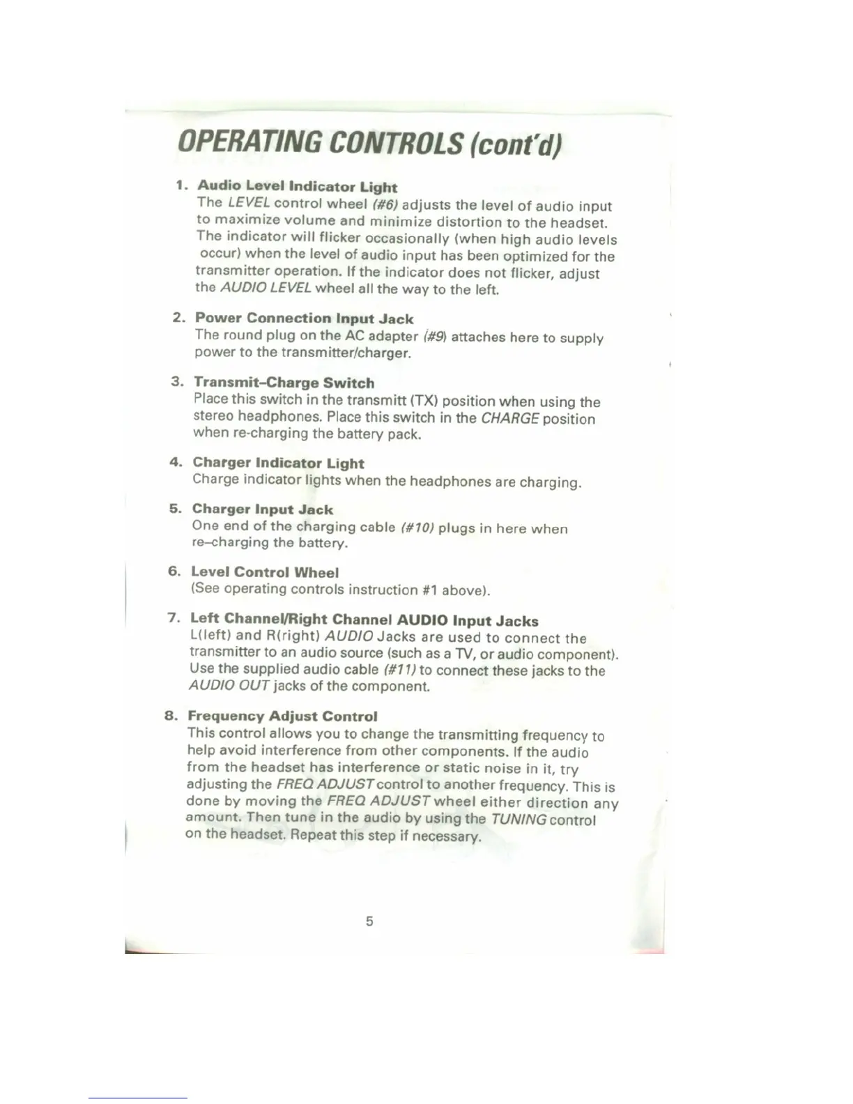 Recoton W500 - Transmitter;Charger Control Details