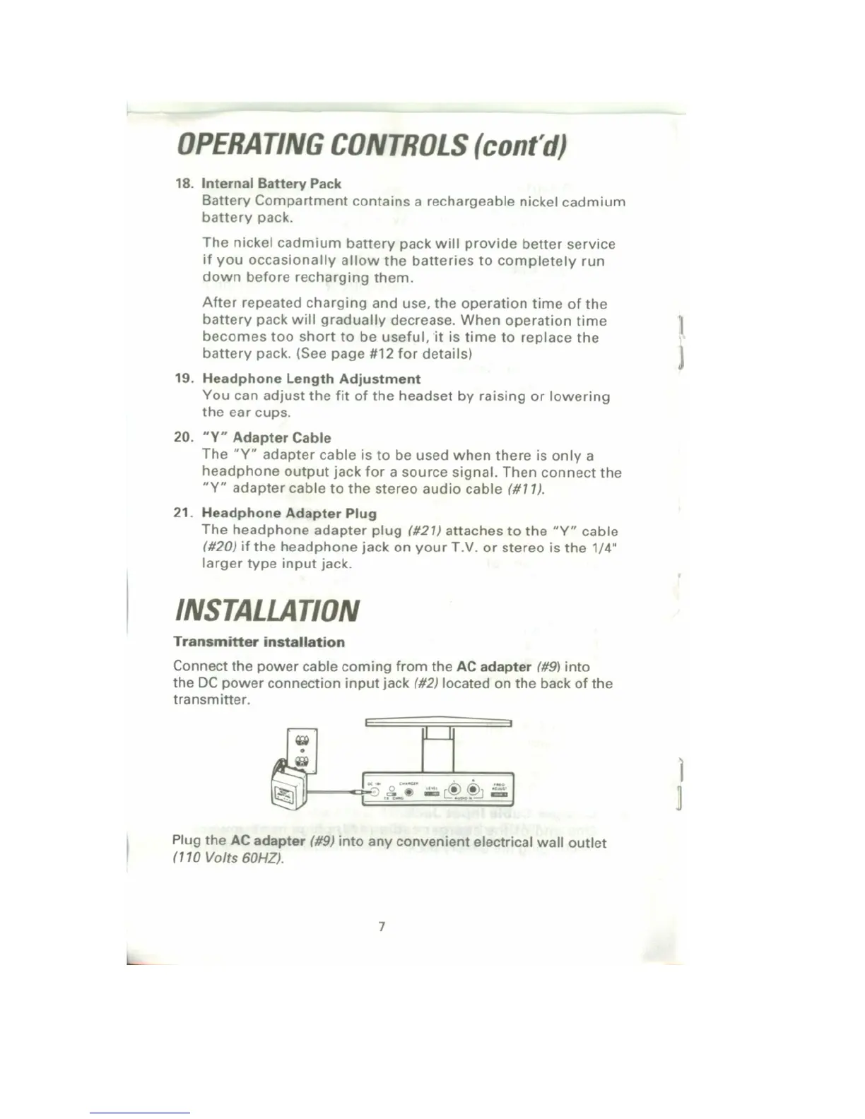 Recoton W500 - Additional Controls and Adjustments; Installation Guide; Transmitter Installation