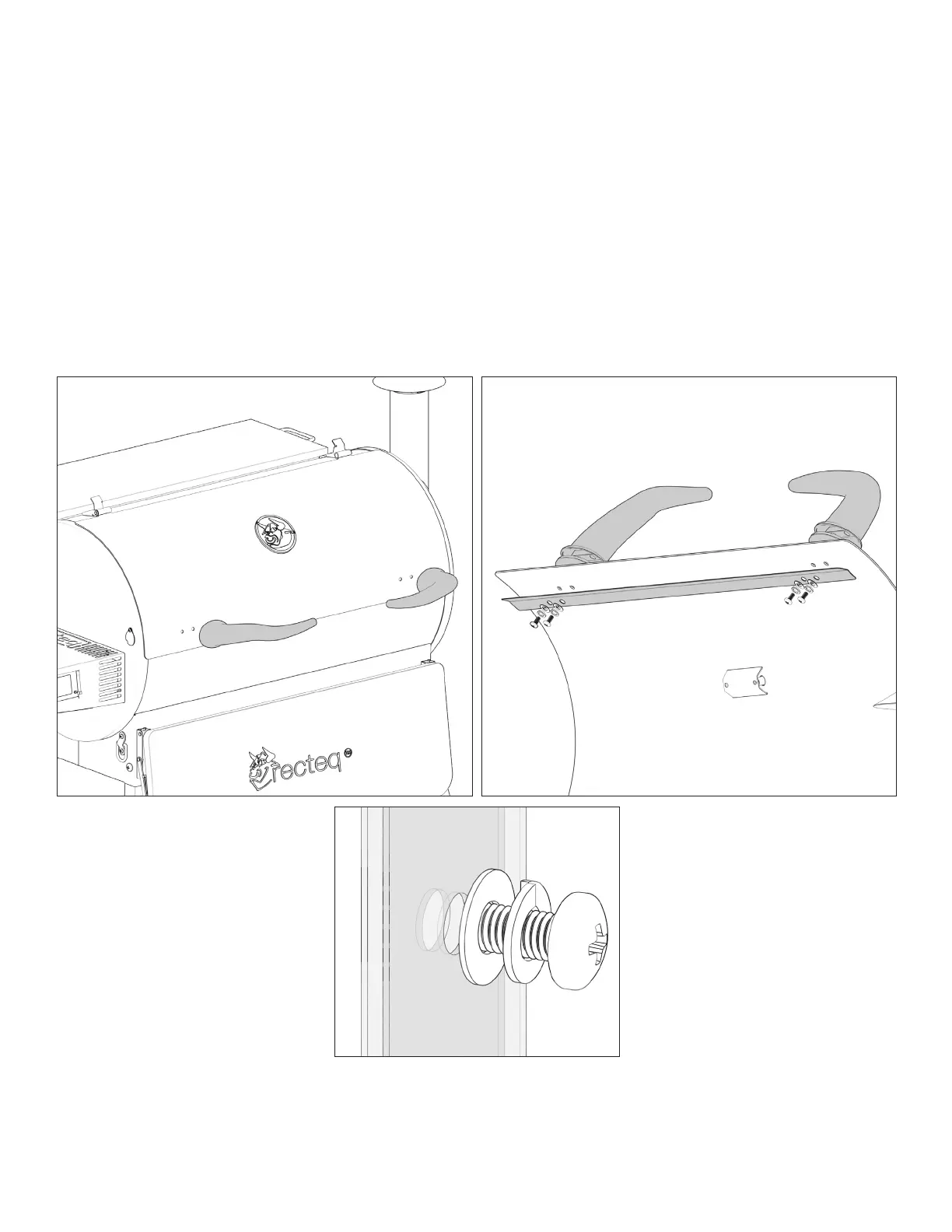 Attach bull horn handles (5) to grill lid using the small bolts that are screwed into the bull horn