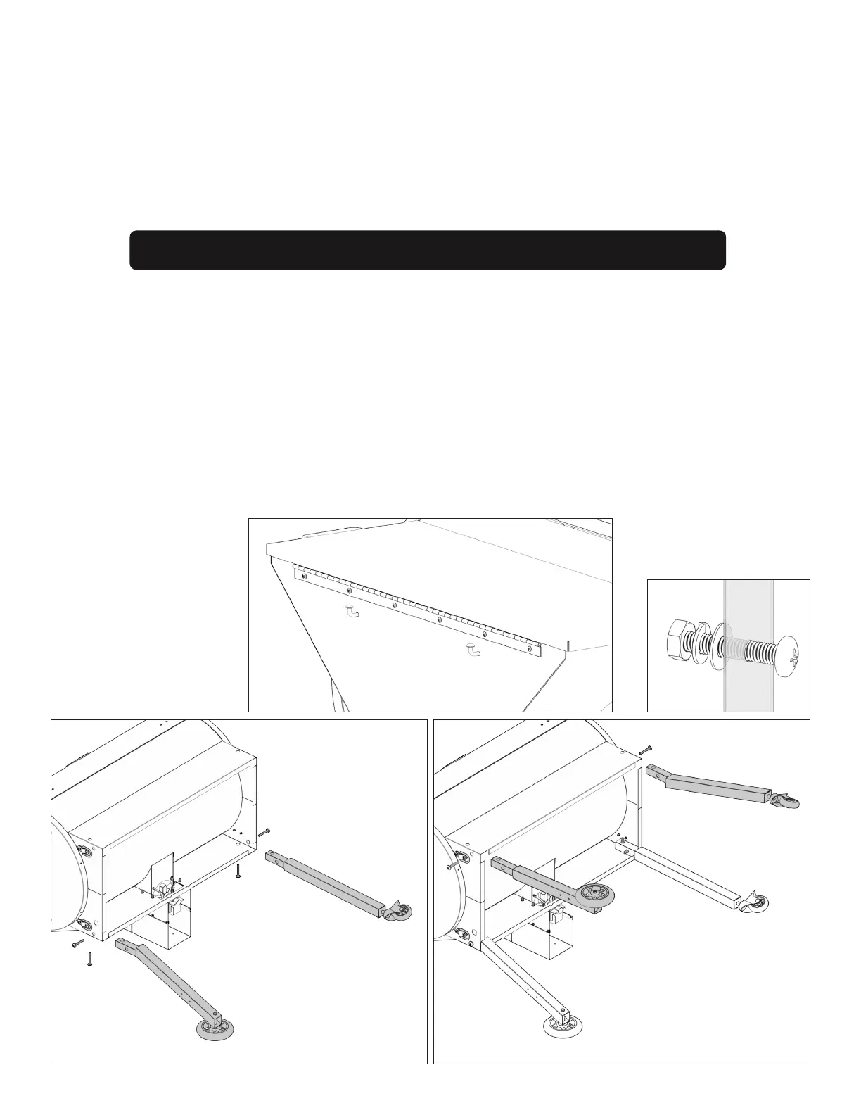 Then on the right side, attach the rear caster wheel leg (2) with bracket holes facing outward from