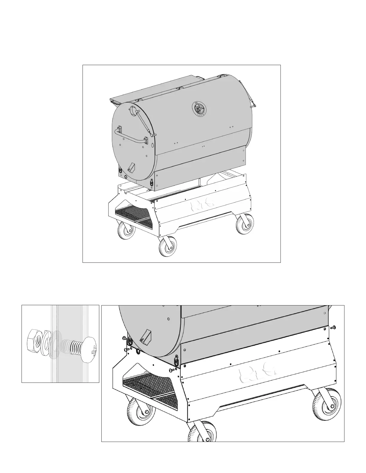 Lift grill body (1) by pull bar handles and place onto locked cart with assistance.