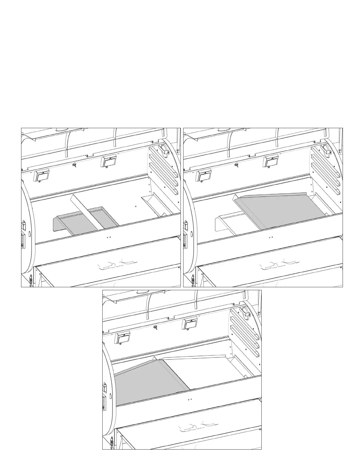 of the barrel, and place the heat deflector over the fire pot. Insert drip pans (10) with notch side