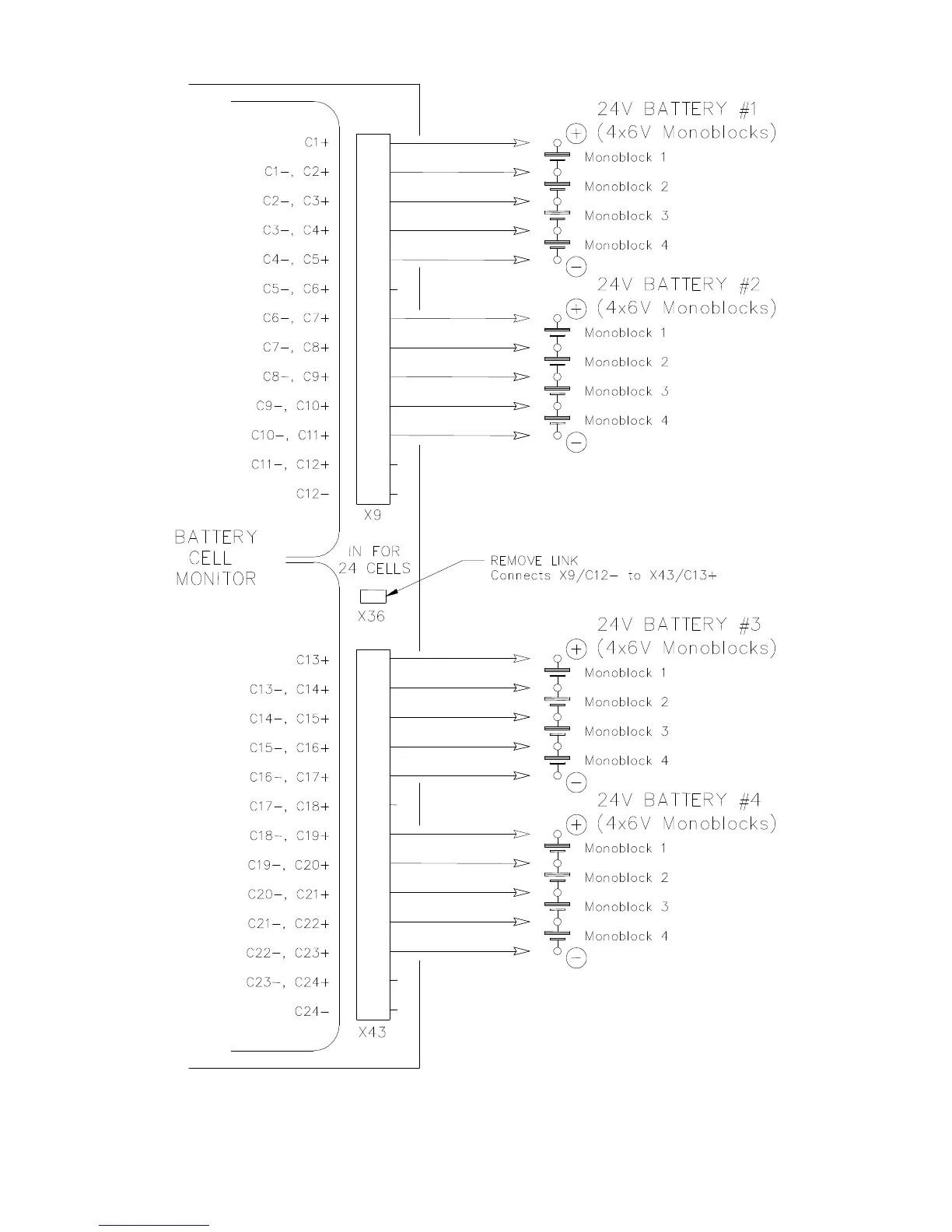 Figure 4.17 BCM connections to four 24V (4 monoblock) battery banks.