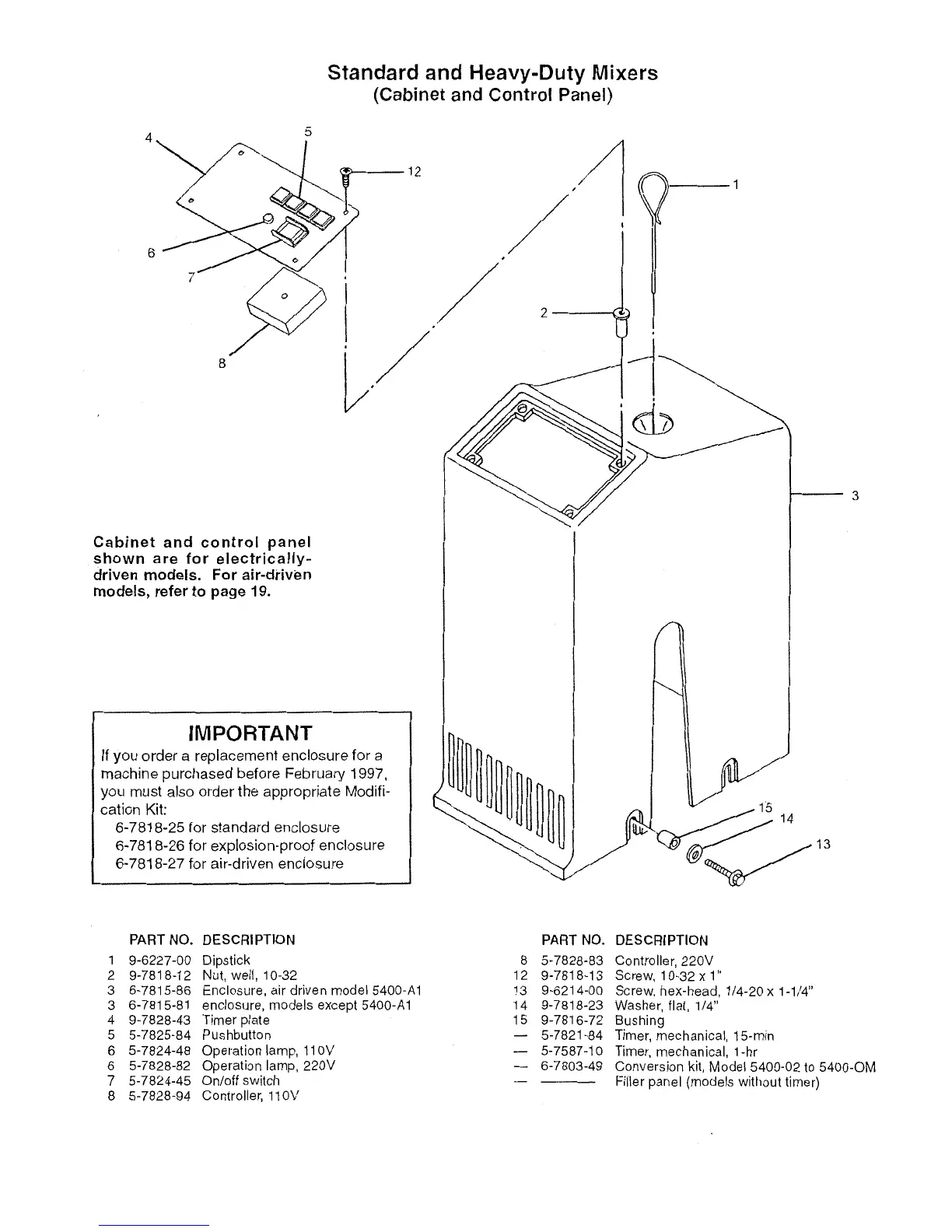 RED DEVIL 5400-02 - Standard and Heavy-Duty Mixers (Cabinet and Control Panel); TIMER CONVERSION KITS