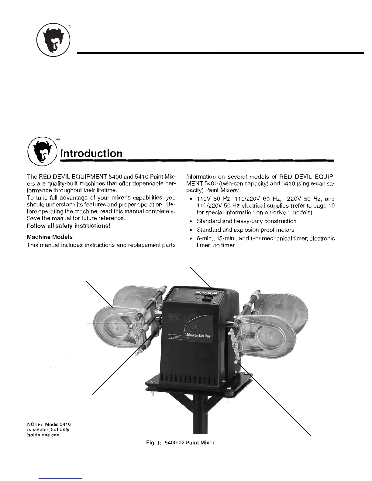 RED DEVIL 5400-OH - Table of Contents; Introduction