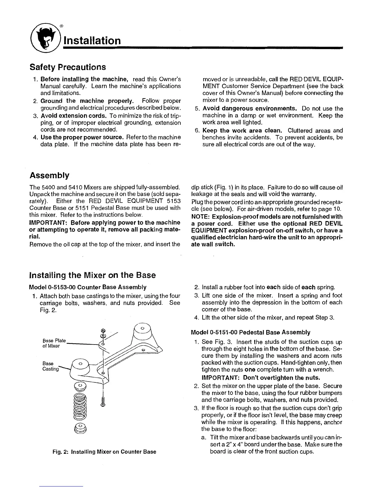 RED DEVIL 5410-OH - Installation; Assembly; Installing the Mixer on the Base