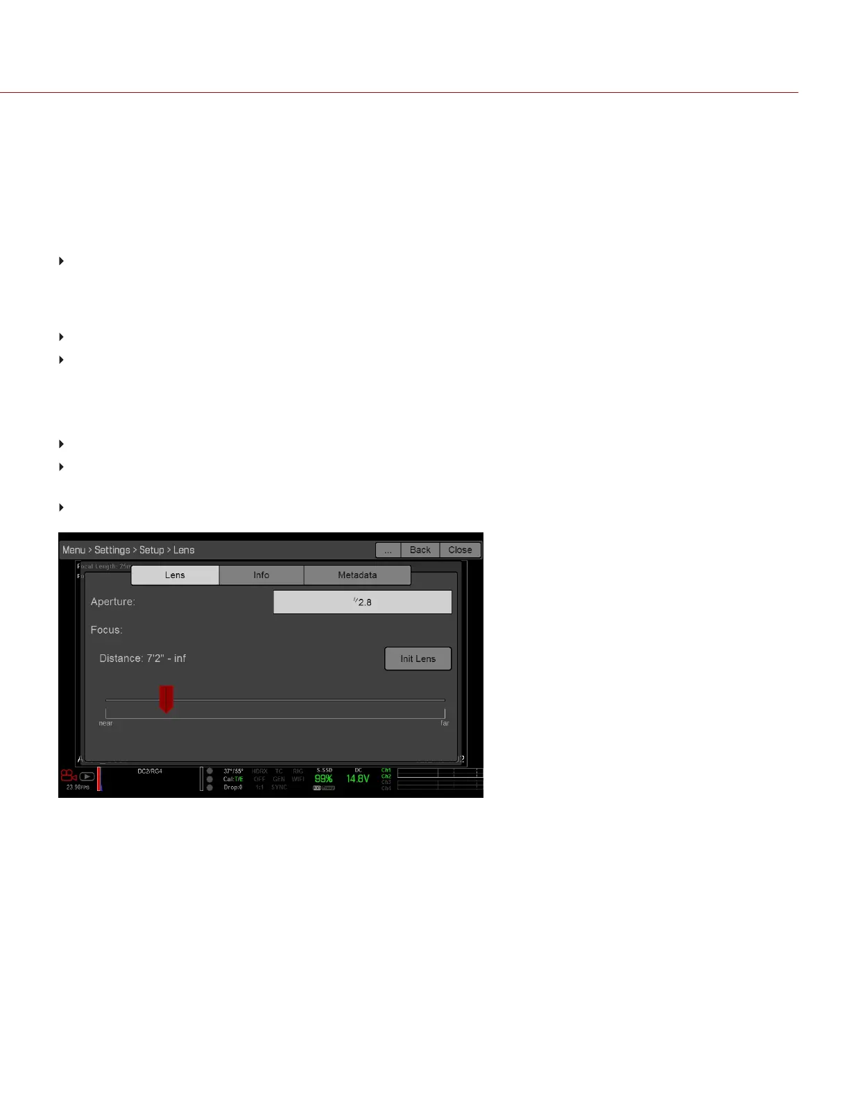 The options below display when a DSMC Nikon Mount or DSMC Canon Mount is installed with a supported lens.