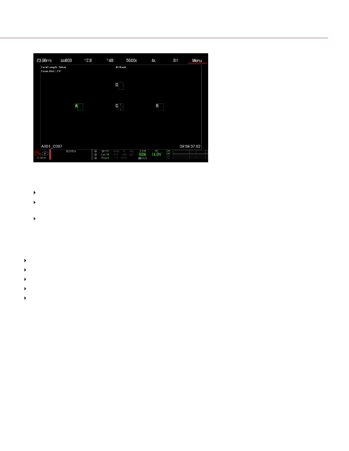 Press the key mapped to AF: Start to cycle to the next rack point in order (A, B, C, and D). For example, if