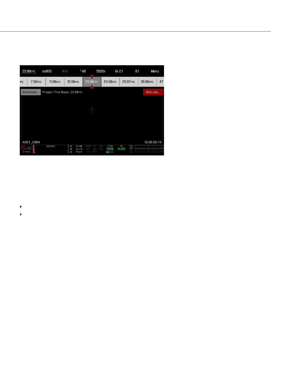 example, if you open the Frame Rate menu and select Edit List..., the camera lets you add or remove values.