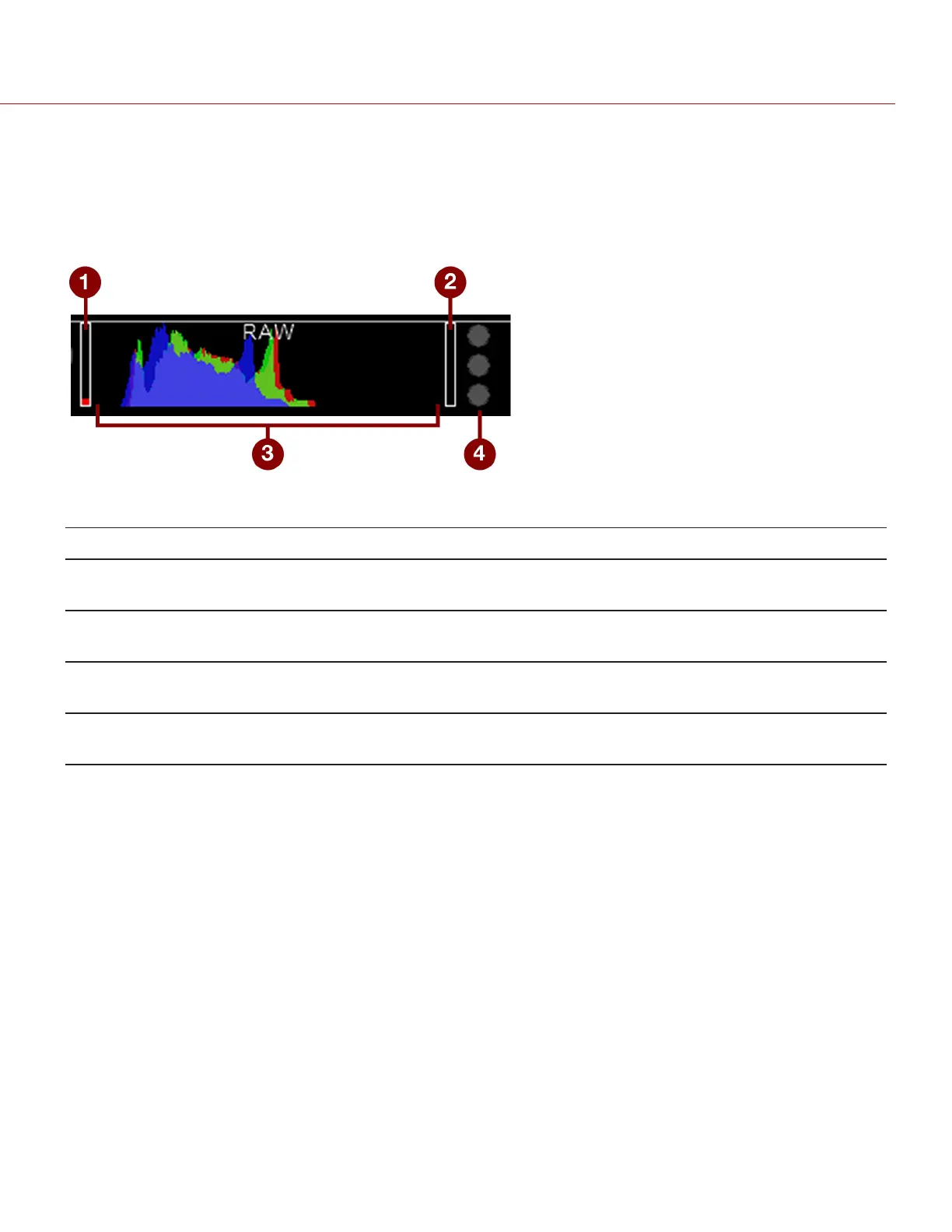 for Red, Green, and Blue channels; Circles (traffic lights) will light up when clipping occurs