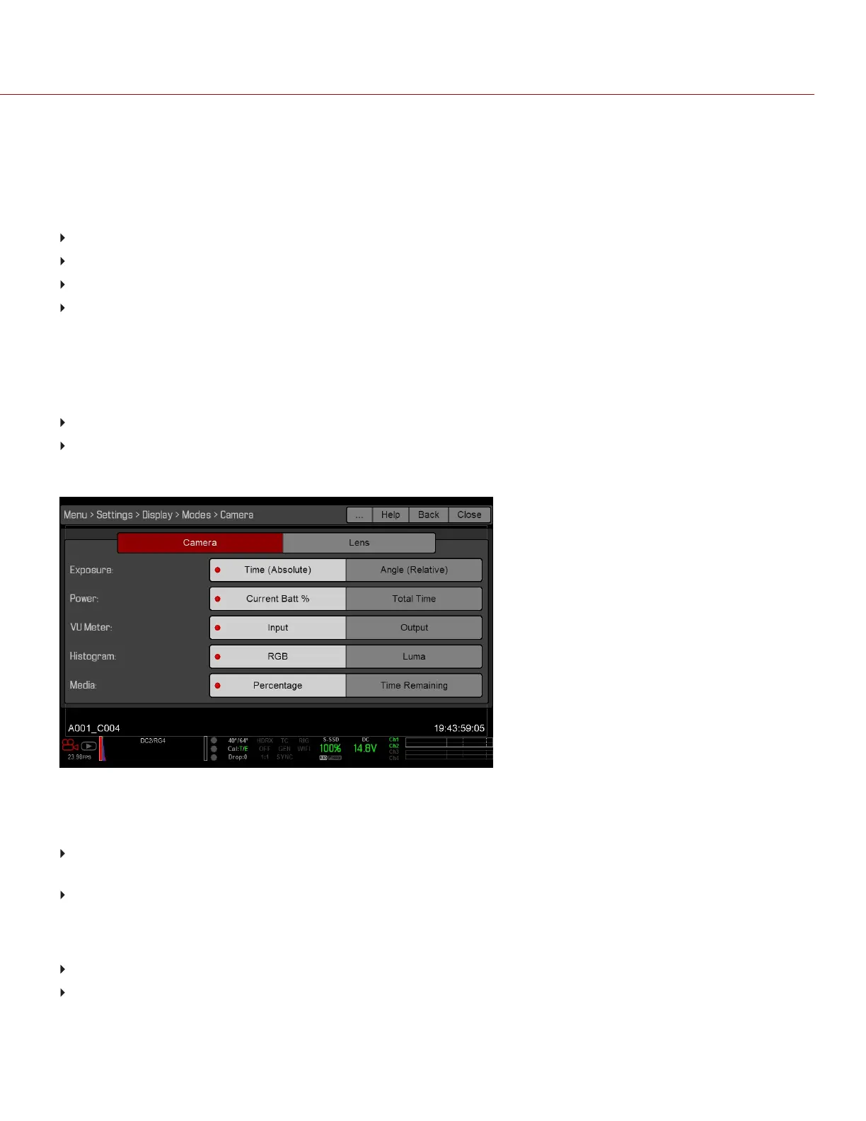 Angle (Relative): Displays the exposure as an angle (1–360°). When you change the frame rate in this mode, the