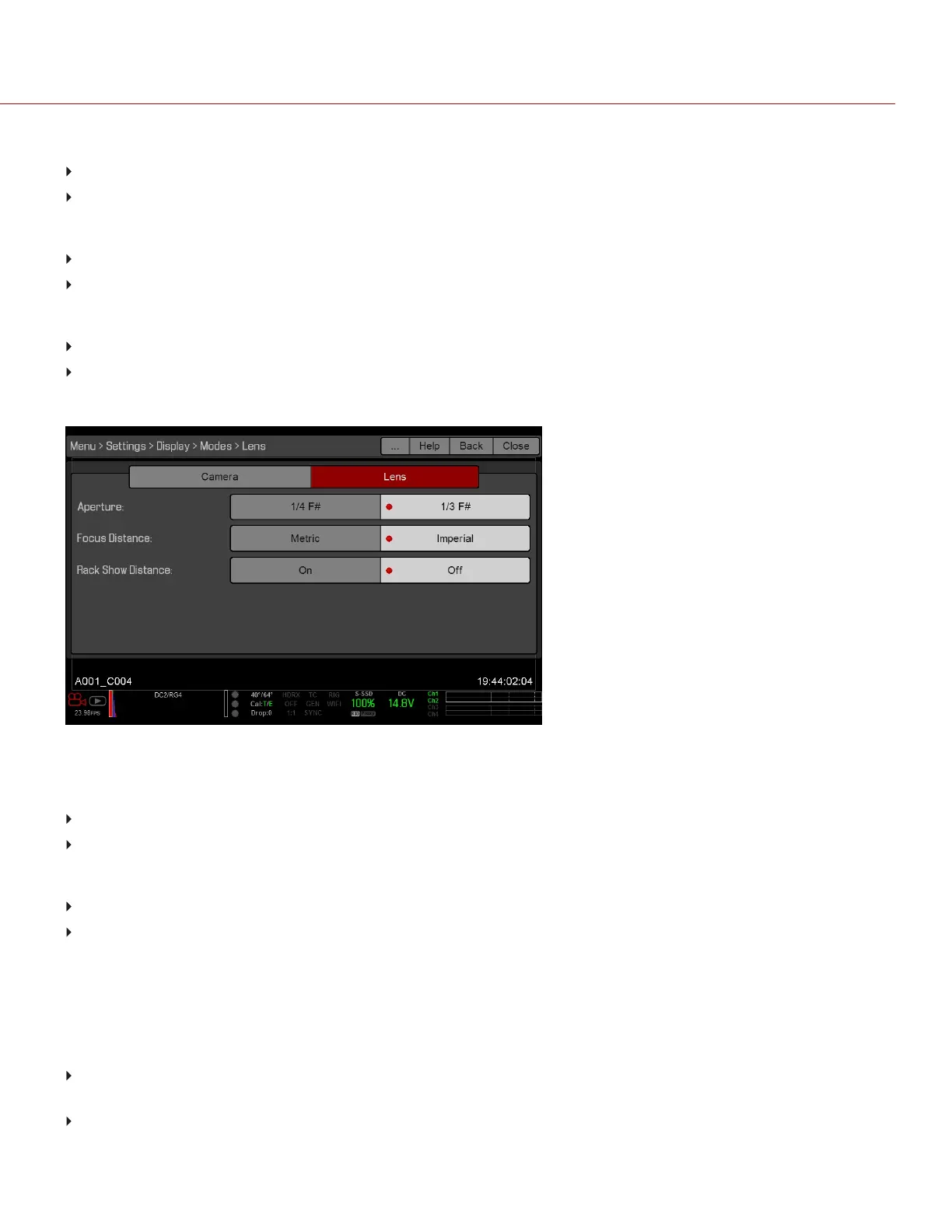 Imperial: Displays lens focus distances in feet and inches. (Default)