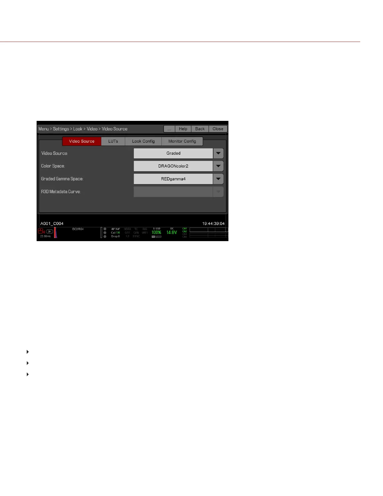 5. If you need to rotate the image or apply a 3D LUT, go to "Look Config (Look Configuration)" on the next page.